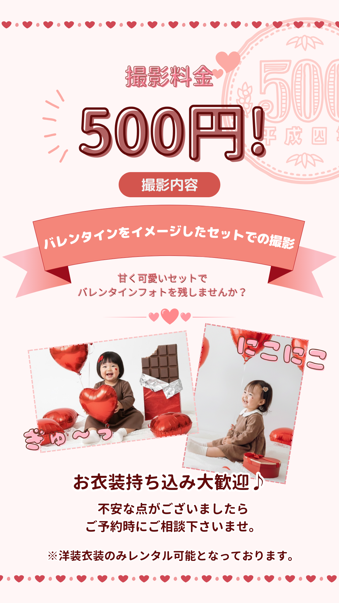 【新規様大歓迎】ワンコイン♥バレンタイン撮影会